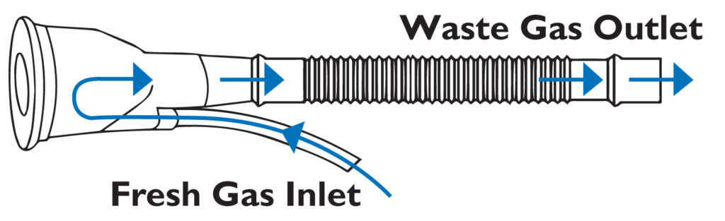 • Uni-directional mask gas flow eliminates dead space so no rebreathing of CO2.
