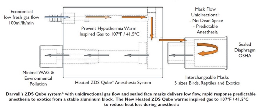 Zero Dead Space (ZDS) Qube non-rebreathing system for exotics, birds, rodents, & reptiles up to 2kg (4lb).