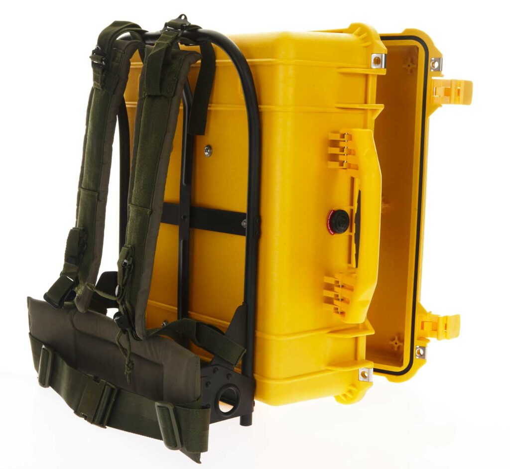 • Mounted in a waterproof Pelican case and can be mounted on a backpack frame.