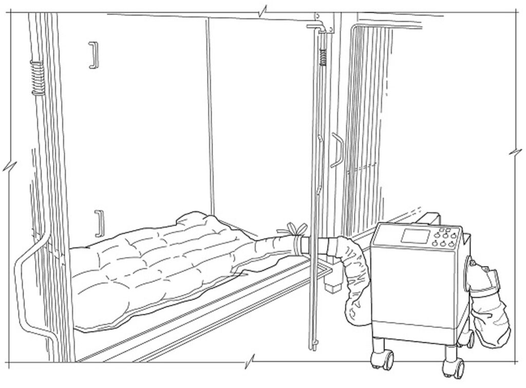 Forced warm air blanket heating systems are used in human and veterinary medicine.