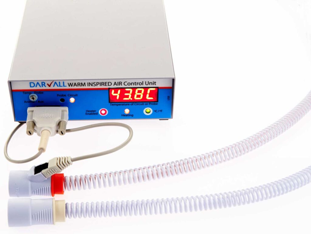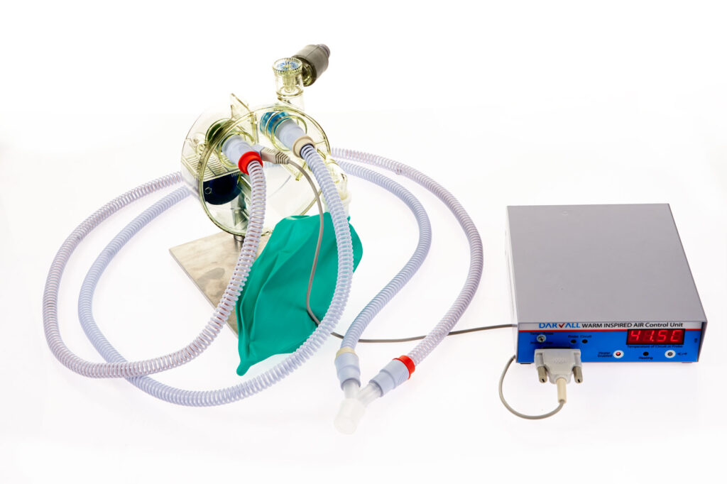 Darvall’s heated breathing circuits are an innovative solution to the critical post-induction heat loss by safely delivering warmed inspired gases to the patient immediately from the first breath after intubation. In addition, re-warming of hypothermic patients is twice as fast by combining heated circuits with forced warm air blankets. All elements combine as an environmentally responsible, reusable warming system.