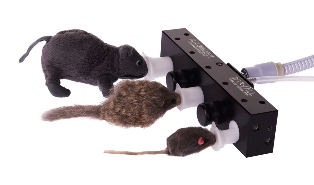 Darvall equipment is specifically designed for small animals, enabling the benefits of low-flow anaesthesia in a research setting. Our vaporisers operate twice as accurately as competitors at low fresh gas flows. The 10-year service interval reduces cost and biosecurity risks. When used with the Darvall Stingray absorber, consumption of anaesthetic gas is reduced by 90%, with associated cost savings & significantly reduced environmental contamination, along with greatly improved operator safety. Innovations of the Stinger Research anaesthetic machine allow simultaneous use in two circuits, or up to five face masks using the Darvall ZDS 5-gang manifold and ZDS face masks. The Heated ZDS Qube combats anaesthetic hypothermia in the smallest animals.